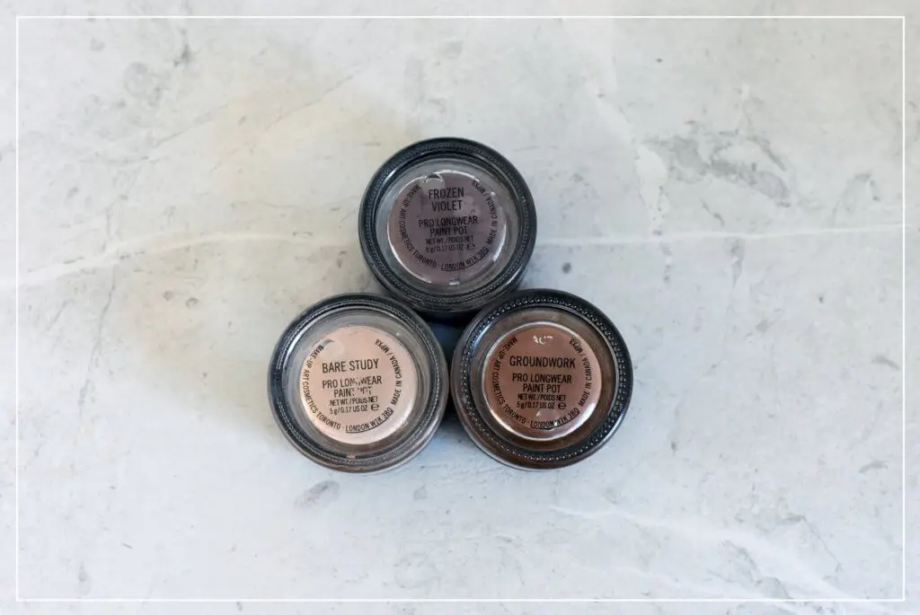 - Кроме того за последний год после открытия MAC в Минске, я наконец-то распробовала Paint Pots (кремовые тени). Я про них знаю давно и многие визажисты их используют довольно часто. Однако, не всегда то, что хит у визажистов приживается в косметичке обычного человека. Поэтому, решиться во время поездки на ходу на покупку было сложно. А из-за открытия наконец-то магазина, я спокойно пришла несколько раз, попробовала самостоятельно нанести, посмотреть наслоение, как держаться тени сухие сверху. В общем, начала с базового оттенка Penterly, наносила долгое время пальцем как базу под тени. Мне результат очень понравился, прекрасная совместимость и стойкость. Поэтому теперь у меня еще два оттенка Groundwork (коричневый базовый для мягких смоки) и Frozen Violet. Последний дает мягкую фиолетовую дымку, часто теперь их использую как базу для другой моей палетки Basic Bitch, так как шиммерные оттенки в ней немного пылят и нуждаются в фиксации. Наносить их можно пальцем, но честно гораздо удобнее наносить кистью.