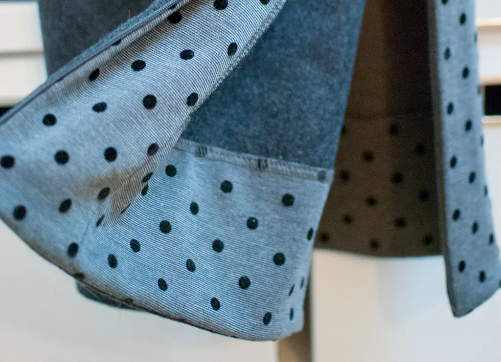 В разрезы вставлены потайные молнии и платье изнутри, когда идешь видно только ткань в горошек.