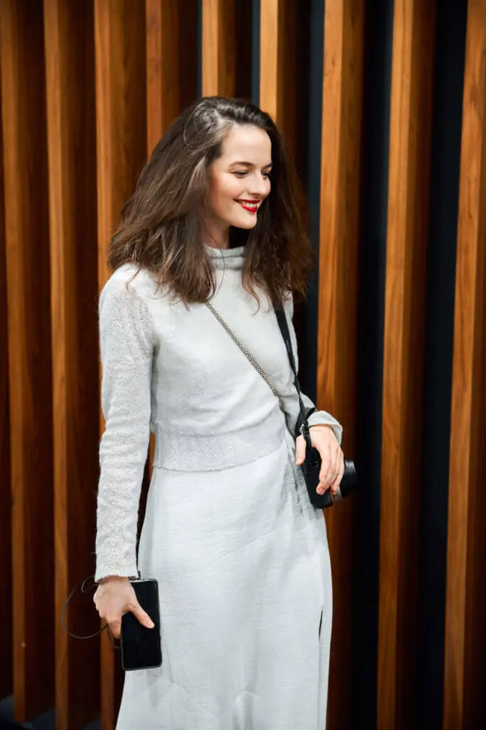 За женственность отвечает платье от DOFAMINE STUDIO с достаточно глубоким разрезом, его я уравновесила плотными колготками Calzedonia. Наверх я накинула старинный, иначе и не скажешь, укороченный мохеровый свитер от FUR GARDEN. Аксессуары расставляют акценты. Все просто и красиво, последний яркий штрих красная матово-кремовая помада и образ готов.