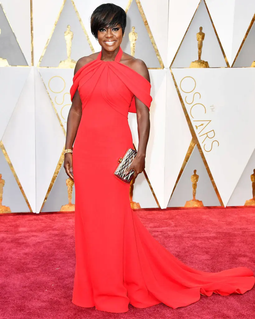 Кто-тотобязательно должен быть в красном. Если ты собираешься выйти на голубую сцену за Оскаром, то красный — это хороший выбор. Виола Дэвис (Voila Davis) в Armani просто прекрасна. Лаконичное платье с отличной посадкой по фигуре, крой скрывающий слабые места актрисы. Макияж, дерзкая прическа, горящие глаза — все что надо для отличного вечера.