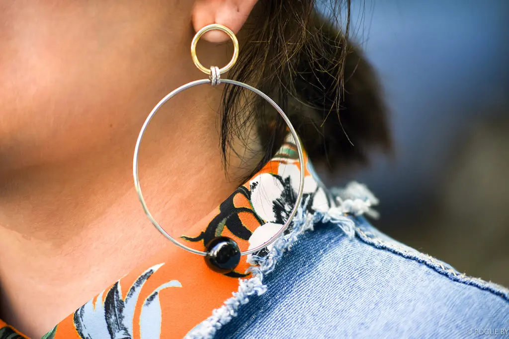Бежать по улицы, зацепить взглядом сочетание фактур, платье и кроссовки, рванный край — следующая мысль: » Хочу! В блог, в рубрику Street Style!» С собой нет фотоаппарата, черт! Как жаль! Уедет сейчас! А так зацепило…. Оборачиваюсь и узнаю Олю Парахневич, дизайнера бренда PTUSHKA. Помните те, серьги с большими паетками из поста про большой маркет. Я тогда еще написала, что они мега крутые и точно будут хитом, жаловалась тогда еще, что не могу носить их из-за аллергии. Так вот, знакомьтесь с автором, серьги творение рук Оли.