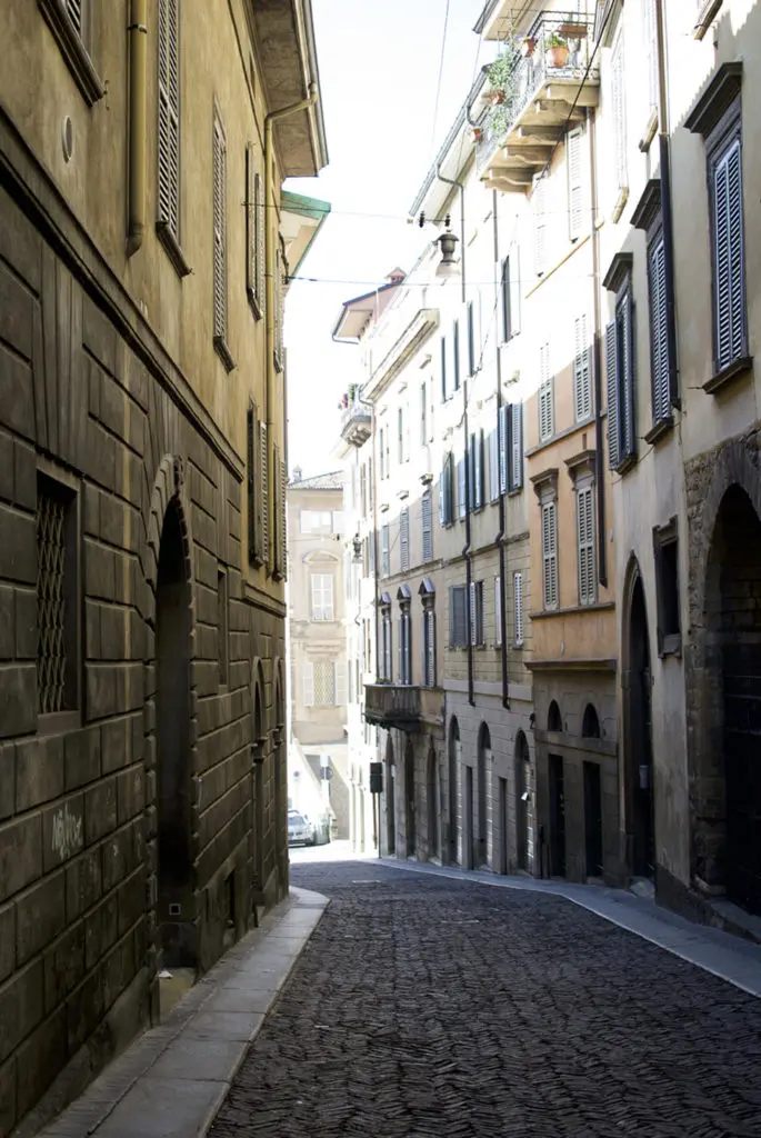 Город очень красивый, дружелюбный и аутентичный: чем дальше вы отходите от вокзала, тем более узкими становятся улицы, а маленькие площади, зажатые между домов, становятся все уютнее. В отличие от Милана, в Бергамо туристов немного и они не бросаются в глаза, зато хорошо замечаешь обычную жизнь местных. Утренняя месса, свежая газета и эспрессо, прогулка с собакой и поход в мясную лавку, филигранная парковка и настоящие шумные итальянские встречные разъезды. Город живет и это меня в нем зацепило.