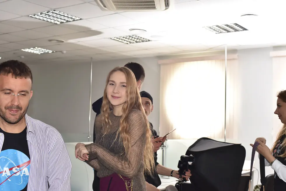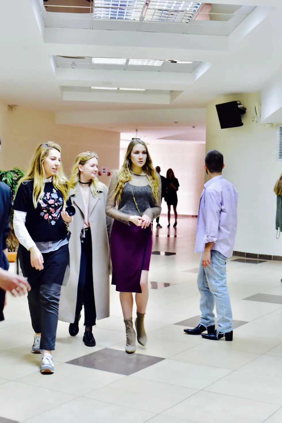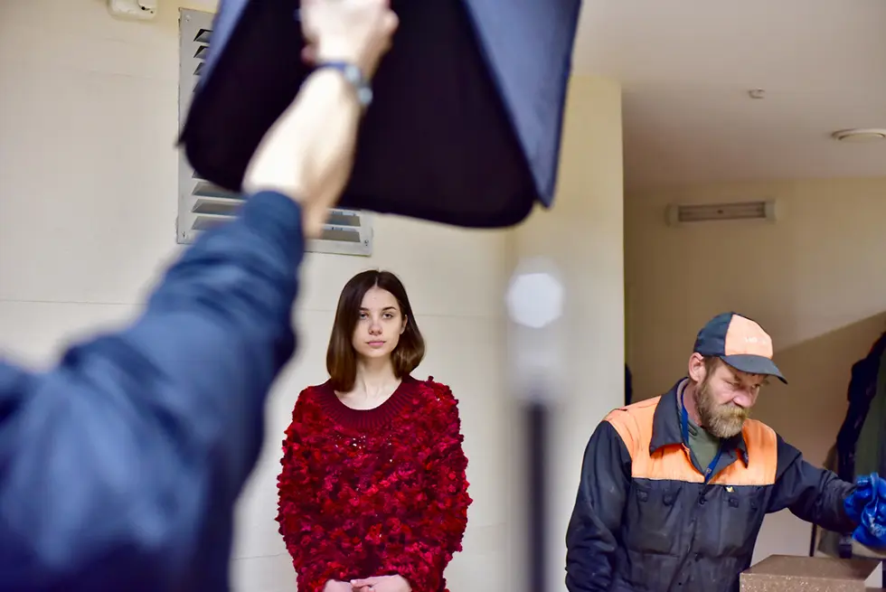 Первые кадры, обсуждение, что изменить, как перенастроить свет – и вот работа кипит. Образы сменяются достаточно быстро. Вокруг бегают модели на репетиции, ходят рабочие и охранники, площадка никак не огорожена и модели вписываются в реальность, которая окружает нас каждый день, в то, к чему мы давно привыкли и уже стараемся не замечать. Реализм в чистом виде.