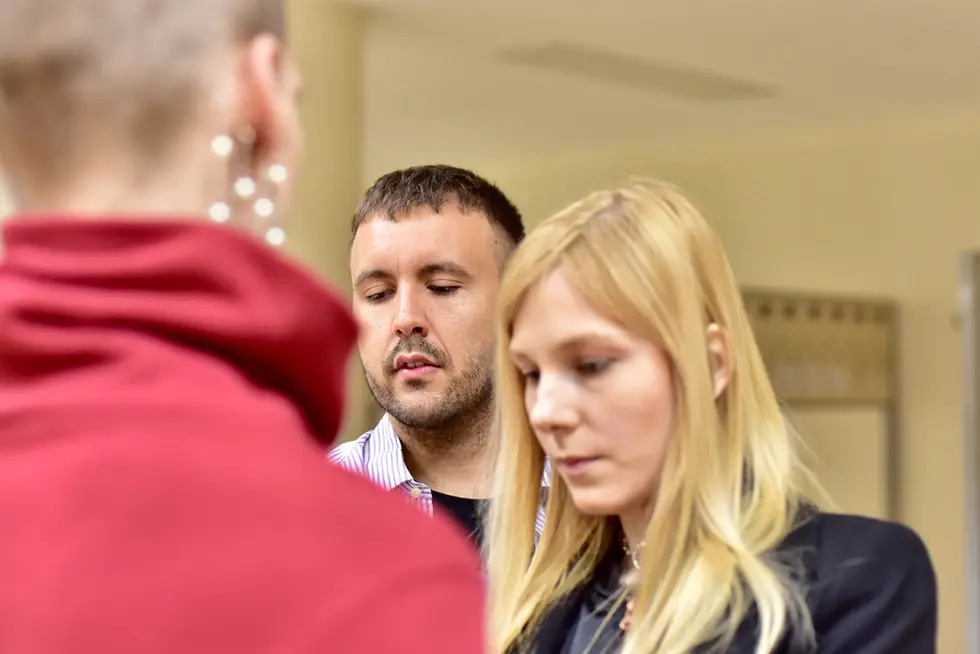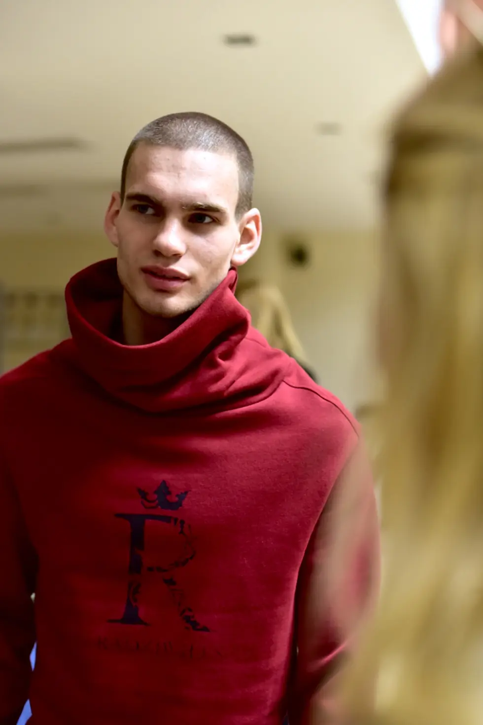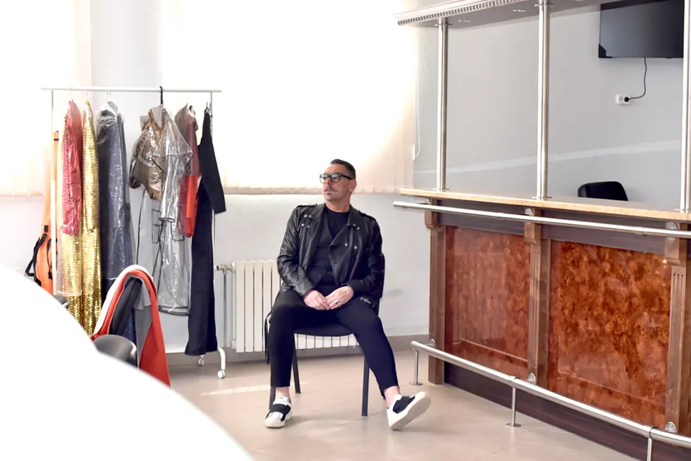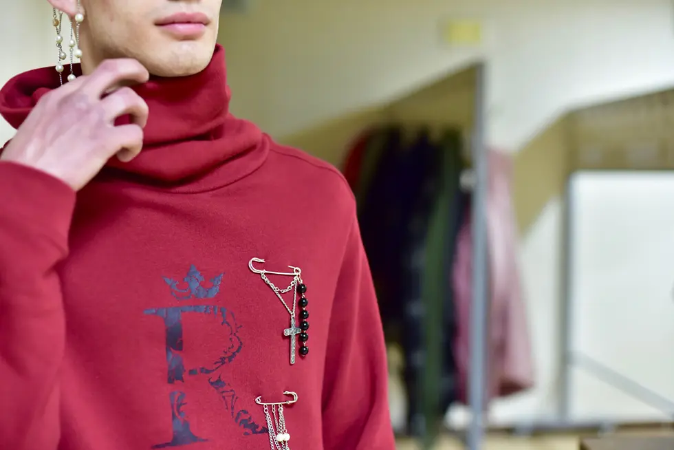 Риккардо лихо миксует женскую юбку с мужским свитшотом из коллекции Mark Formelle by Vasjuchenka & Starikova, чтобы показать условность гендерных различий, подчеркнуть в образе феминность. Рикардо же не в курсе скандала и сексиского рекламного ролика, поэтому этот шаг добавляет пикантности. Тем самым он демонстрирует отсутствие в современном fashion границ, которые еще несколько десятилетий назад казались незыблемыми, а те, кто их нарушал, считались авангардистами.
