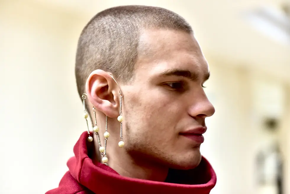 Образ дополнили булавками и каффой с жемчугом от BLISKAVICA. И сразу же все сложилось: появились отсылки к историческому костюму не только в дизайне одежды, но и в деталях стайлинга.
