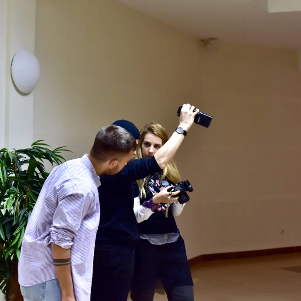 Фотограф Таня Шкопец за работой. Я безумно рада, потому что с Таней мы познакомились еще на февральских съемках нашего блогерского проекта, вместе мерзли, а потом дружно болели. Её компаньон, фотограф Никита Ридецкий, и Риккардо вместе смотрят, что получилось.